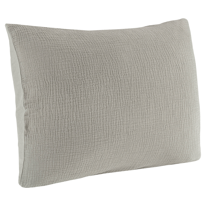 Rolling från Borganäs, enfärgat grått påslakanset med tvättad look och dubbelvävd framsida med skrynklig textur som påminner om bäckebölja/seersucker, och med en baksida i percale.