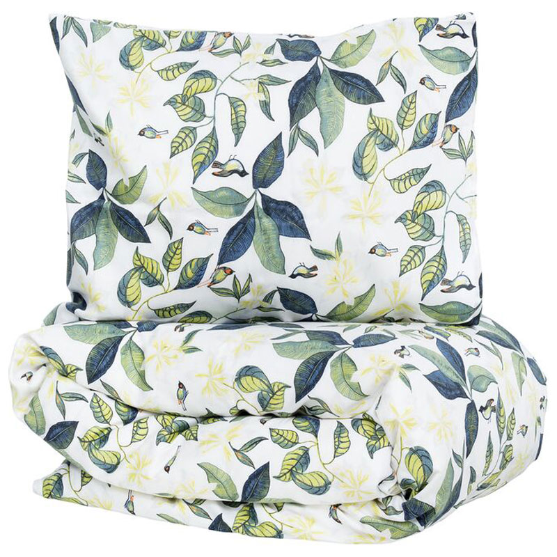 På påslakanet finner du mycket blad i olika nyanser av grönt.
