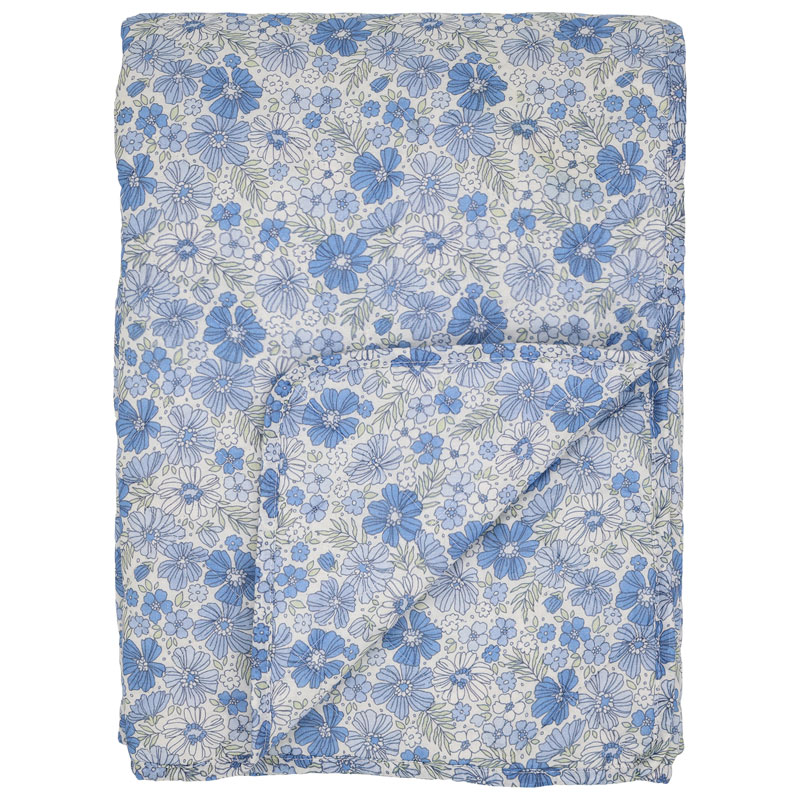 Quiltad pläd från Chic Antique, prydd av ett småblommigt mönster i blå nyanser.
