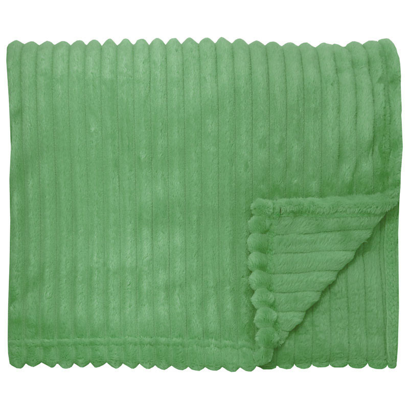 Baloo från Redlunds, mysig pläd i äppelgrön flanellfleece med grovt ribbad textur.