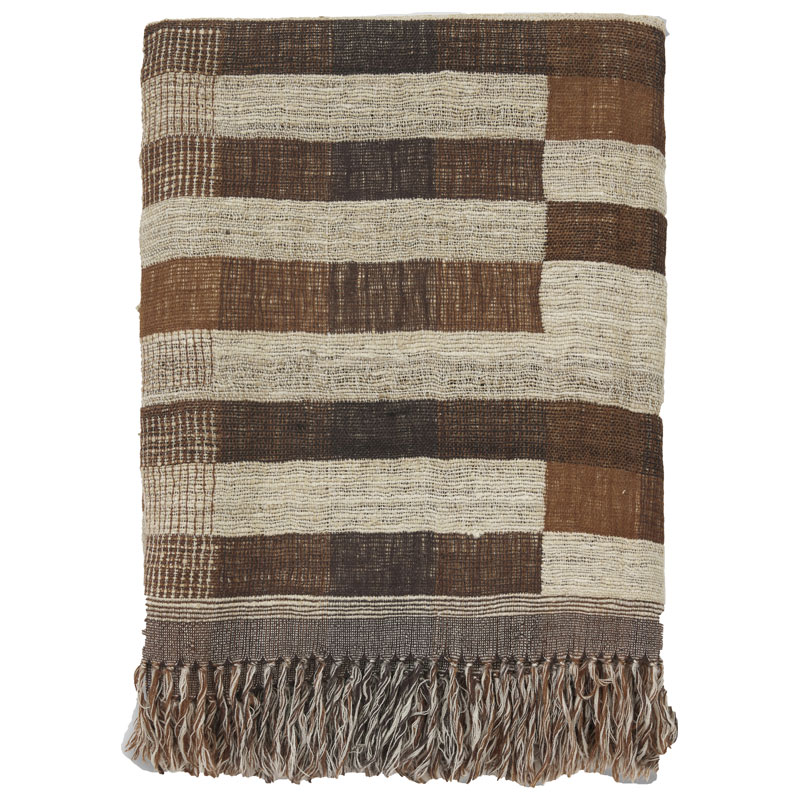 Exklusiv pläd av ull och silke i en vacker beige/brun färg med fantastisk lyster från Jakobsdals. Det vackra randiga mönstret tillför ett konstnärligt uttryck som verkligen fångar uppmärksamheten.