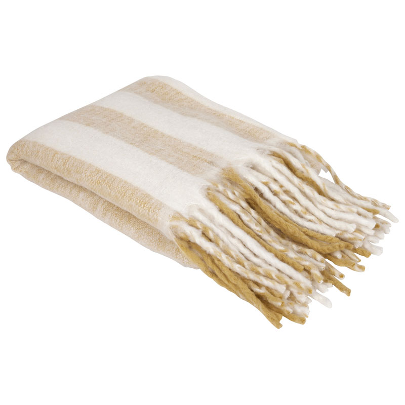 Mia från Fondaco, mysig pläd i akryl och ull med breda ränder och snurrade fransar.
