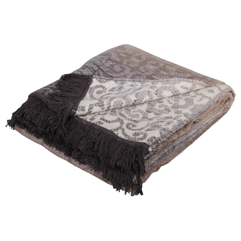 Vindel från Värnamo of Sweden, mjuk pläd med vackra fransar och ett elegant mönster i dämpade naturtoner. Perfekt för soffan, sängen eller som en varm detalj att svepa in sig i när kvällen blir sval.