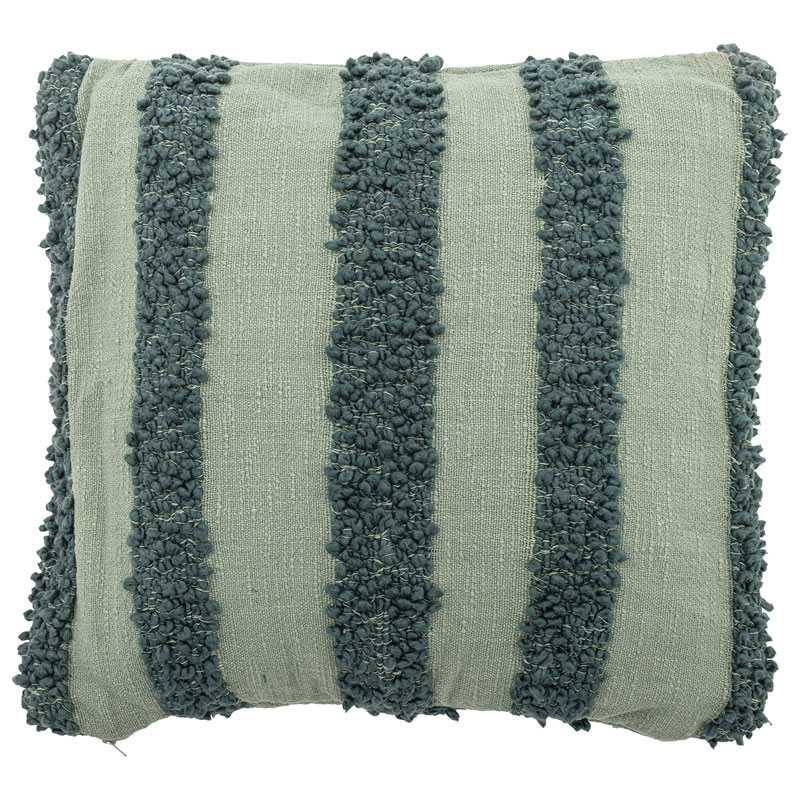 Cory är en vacker prydnadskudde från Bloomingville, med mörkgröna tuftade ränder mig en grön botten.