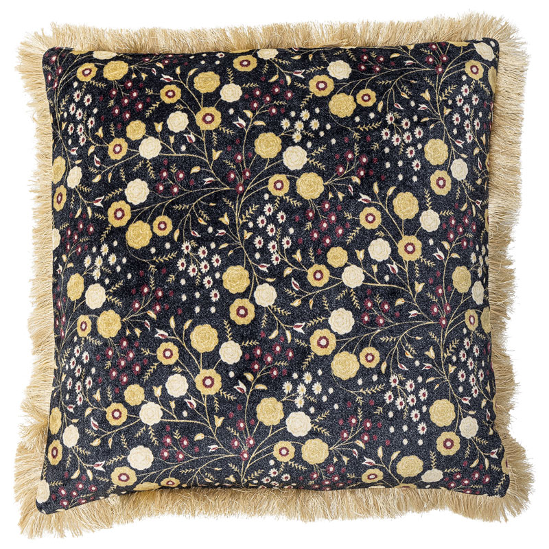 Eydis är en underbar prydnadskudde i sammet från Bloomingville. Det vackert tryckta blommönstret skapar en lysande färgklick i soffan som ramas in fint av den smala franskanten.