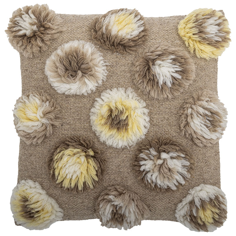 Somma från Bloomingville är en härlig prydnadskudde med tuftade blommor i ull, med nyans av brunt, gult och vitt som ger hemmet en unik och inbjudande känsla.