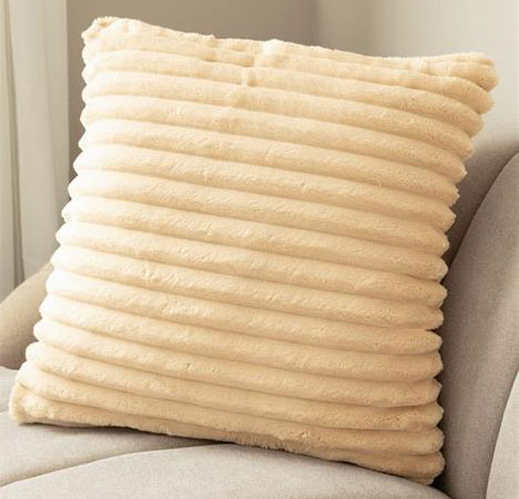 Stripe kudde från KM Carpets har ett invävt randmönster i hög, mjuk lugg som kombinerar tydlig struktur med en fluffig, inbjudande yta. En kudde som förhöjer helhetsintrycket med både form och komfort