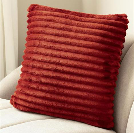Stripe kudde från KM Carpets har ett invävt randmönster i hög, mjuk lugg som kombinerar tydlig struktur med en fluffig, inbjudande yta. En kudde som förhöjer helhetsintrycket med både form och komfort