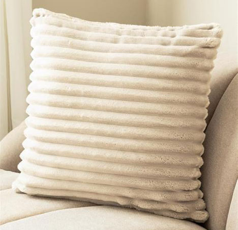 Stripe kudde från KM Carpets har ett invävt randmönster i hög, mjuk lugg som kombinerar tydlig struktur med en fluffig, inbjudande yta. En kudde som förhöjer helhetsintrycket med både form och komfort
