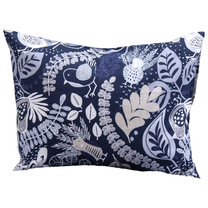 Lekfullt, mönstrat örngott i satin från Kosta Linnewäfveri i en härligt marinblå nyans.