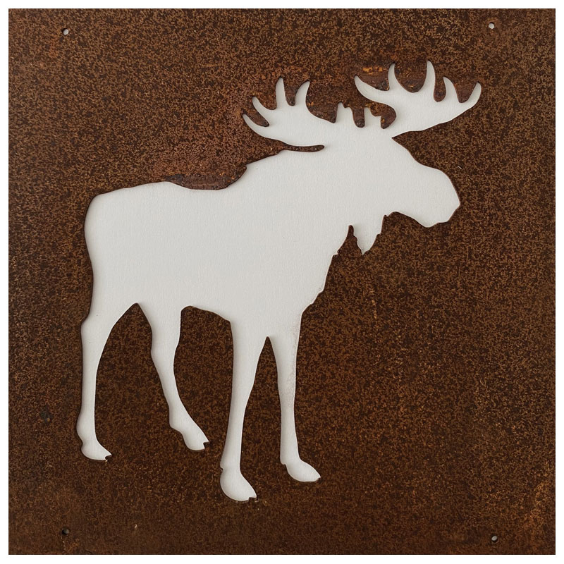 Fin skylt till armeringsnät från Lind Decoration, med utstansat motiv av en älg.