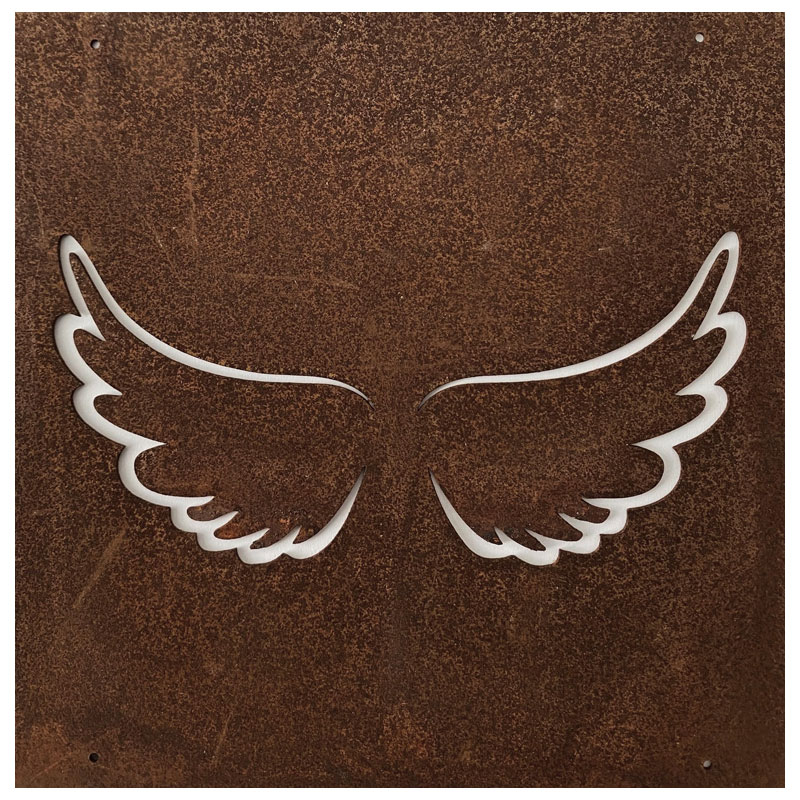 Fin skylt till armeringsnät från Lind Decoration, med utstansat motiv av änglavingar.