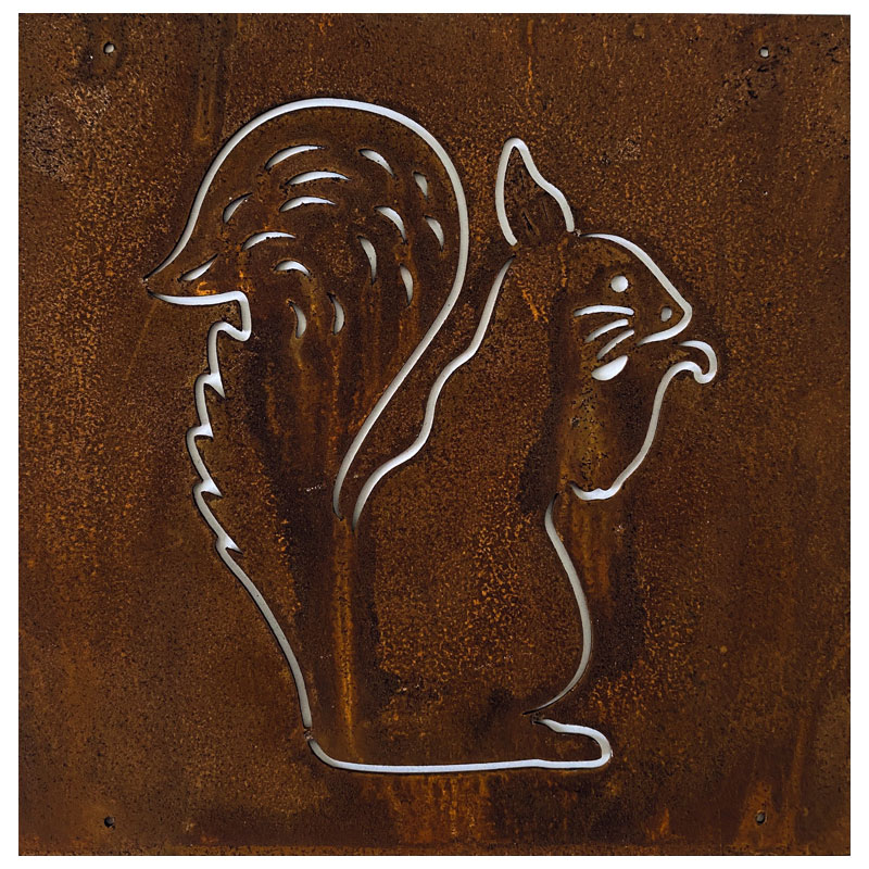 Fin skylt till armeringsnät från Lind Decoration, med utstansat motiv av en ekorre.