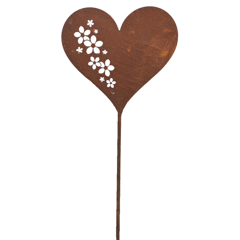 Trevlig, trädgårdsdekoration på stav med från Lind Decoration i form av ett hjärta smyckat med utstansade blommor.
