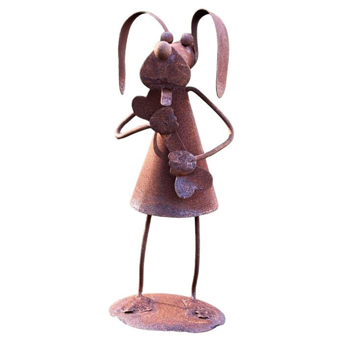 Rolig trädgårdsdekoration från Lind Decoration i form av en hund med dagens lunch i händerna.