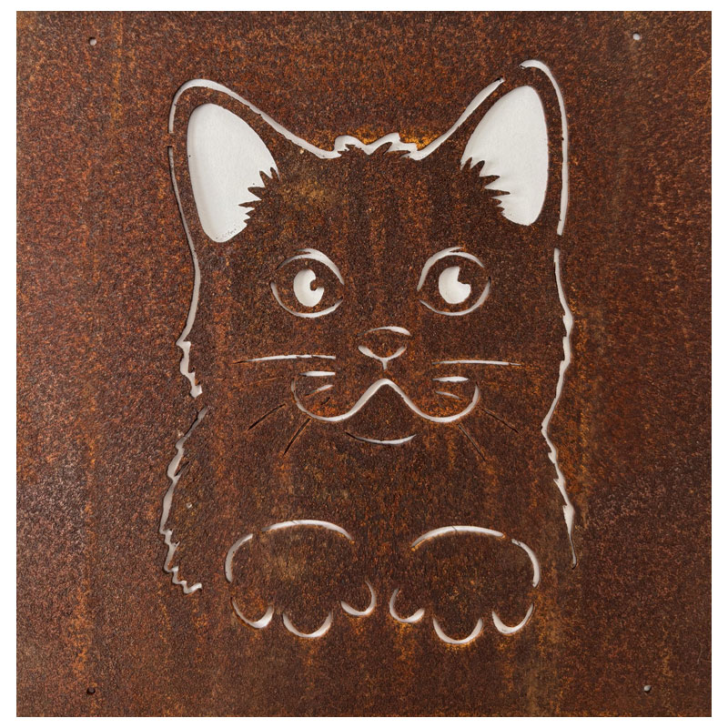 Fin skylt till armeringsnät från Lind Decoration, med utstansat motiv av en katt.