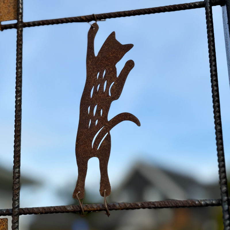 Söt katt från Lind Decoration som kan sättas fast i armeringsnät.