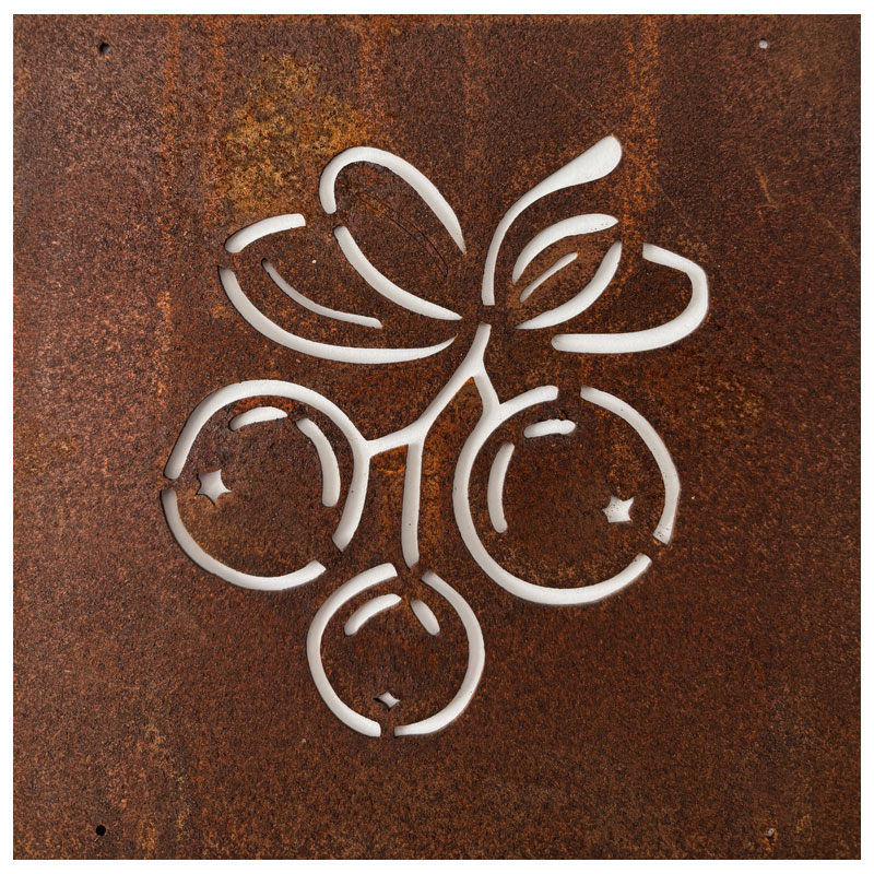 Fin skylt till armeringsnät från Lind Decoration, med utstansat motiv av lingon eller blåbär.