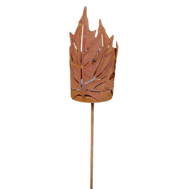 Vacker ljuslykta på stav från Lind Decoration, med lönnblad i metall på utsidan och avtagbart glas inuti.