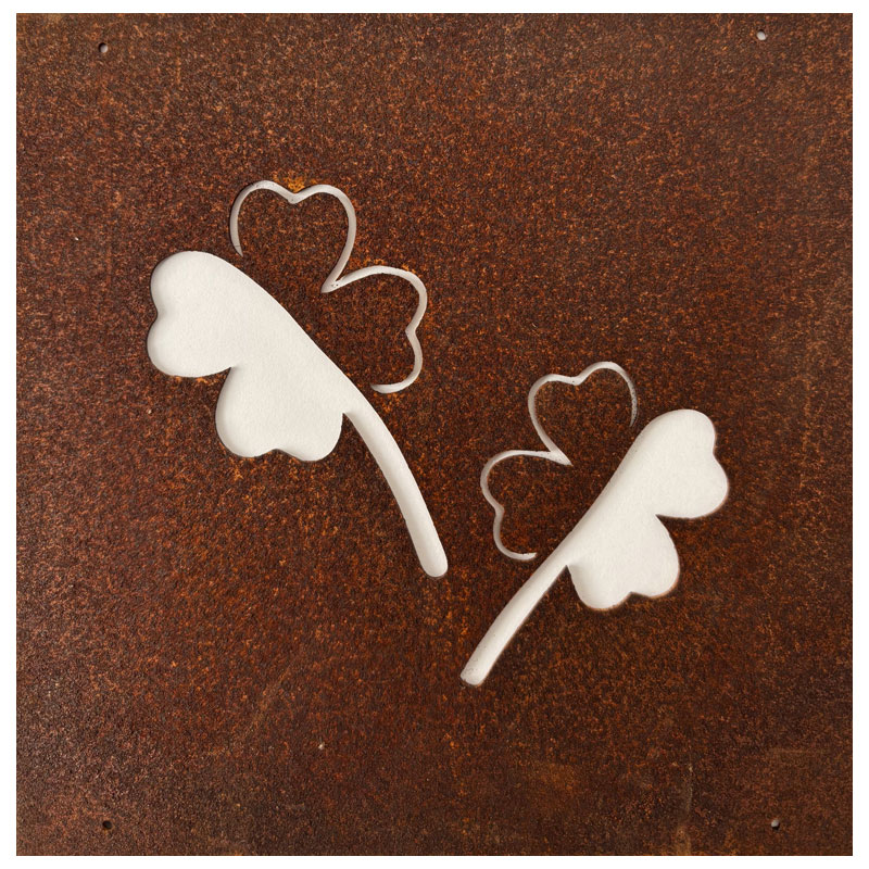 Fin skylt till armeringsnät från Lind Decoration, med utstansat motiv av fyrklöver.