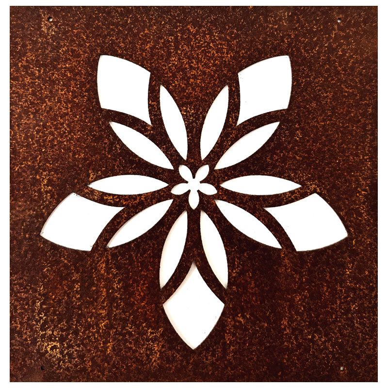 Fin skylt till armeringsnät från Lind Decoration, med utstansat motiv av en blomma med mandalamönster.