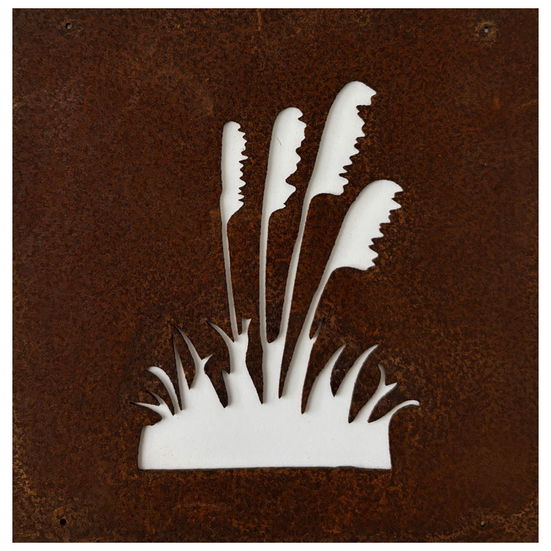 Fin skylt till armeringsnät från Lind Decoration, med utstansat motiv av pampasgräs.