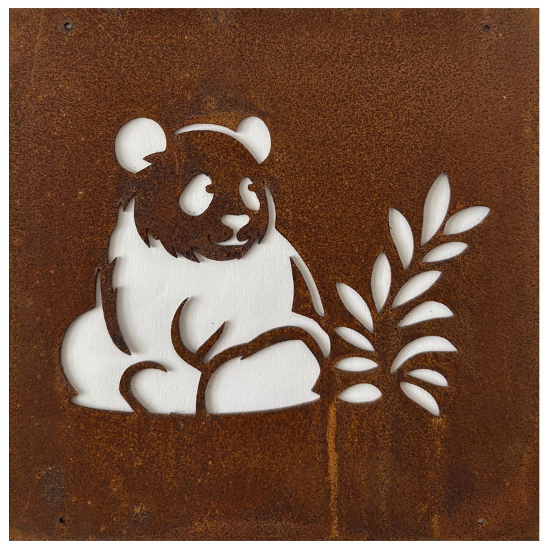 Fin skylt till armeringsnät från Lind Decoration, med utstansat motiv av en panda.