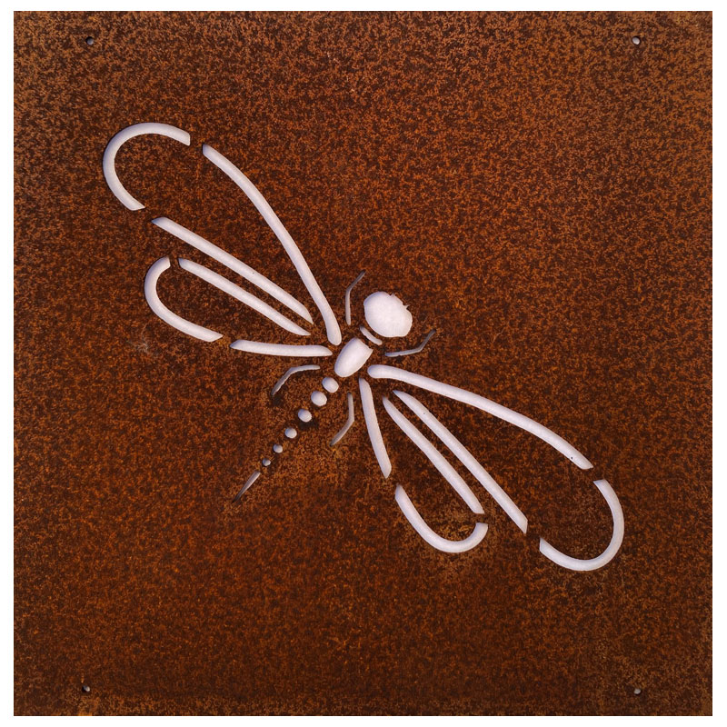 Fin skylt till armeringsnät från Lind Decoration, med utstansat motiv av en slända.