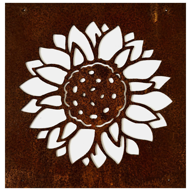 Fin skylt till armeringsnät från Lind Decoration, med utstansat motiv av en solros.