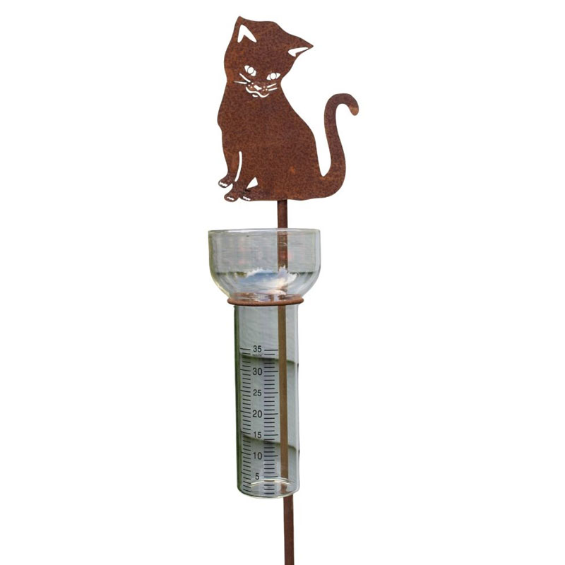 Vacker regnmätare från Lind Decoration där katten Tussie sitter högst uppe på stativet.