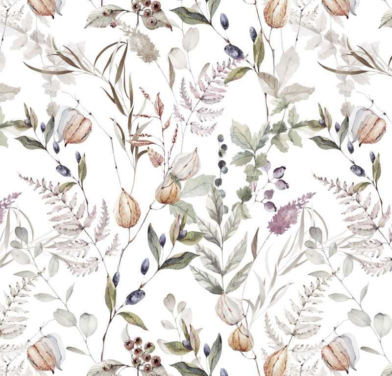 Vackert tyg från Redlunds. Designat i ett tjusigt och tidlöst mönster med fina löv mot en vit botten.