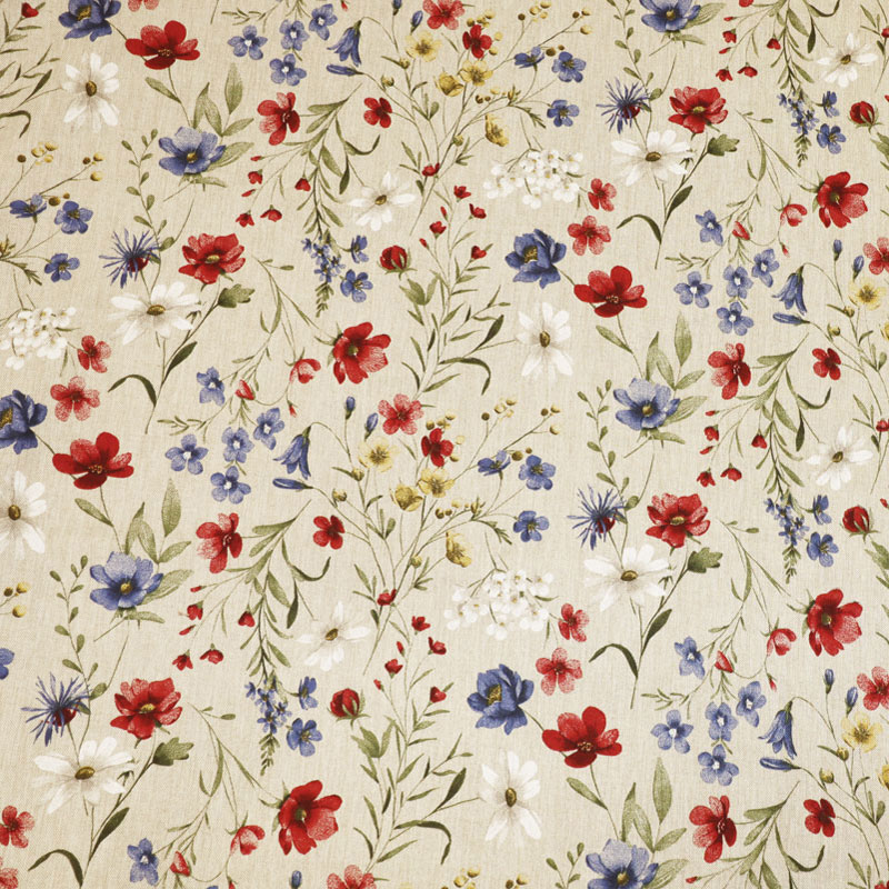 Multifärgad textilvaxduk från Redlunds på metervara i ett härligt blomstrande mönster.