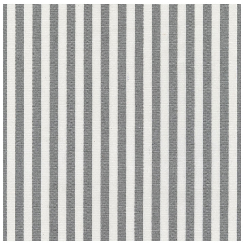 Stilren textilvaxduk på metervara från Redlunds, pryd av ett smalrandigt mönster i grått och vitt.