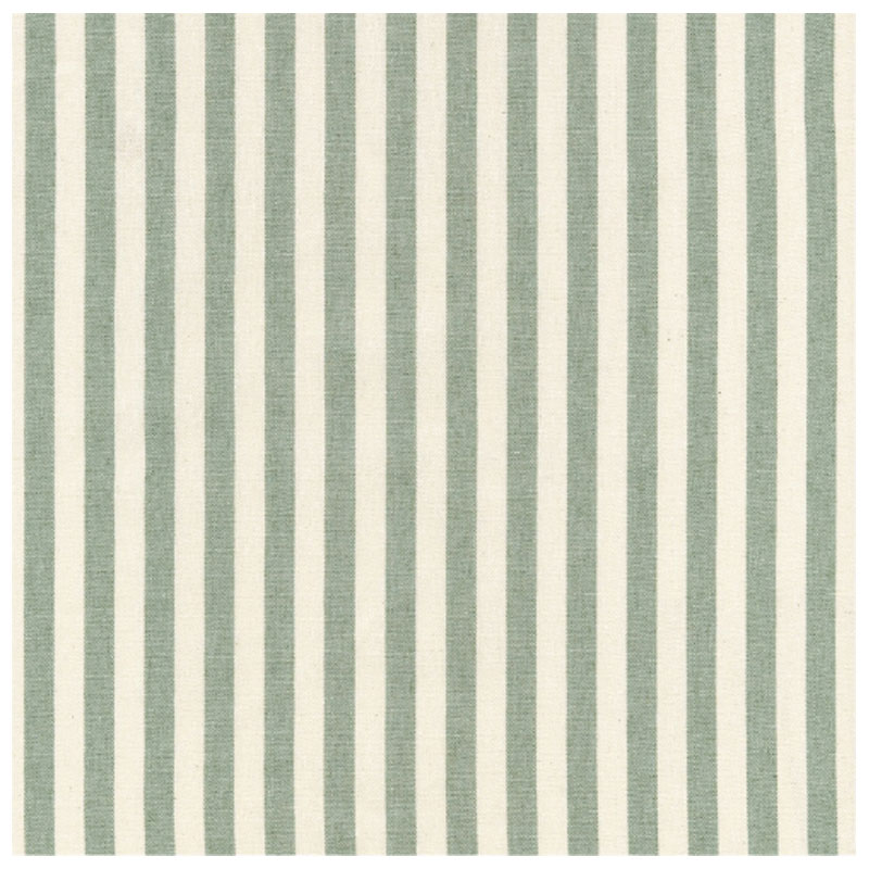 Stilren textilvaxduk på metervara från Redlunds, pryd av ett smalrandigt mönster i grönt och vitt.