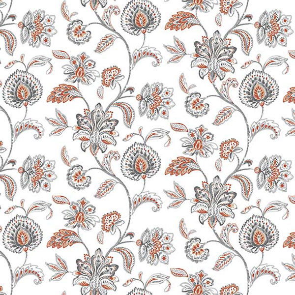 Fin vaxduk som metervara med ljuvligt växtmönster i brunt och grått mot vit botten. Vaxduken är lätt att torka av och skyddar ditt bord mot fukt och fläckar.