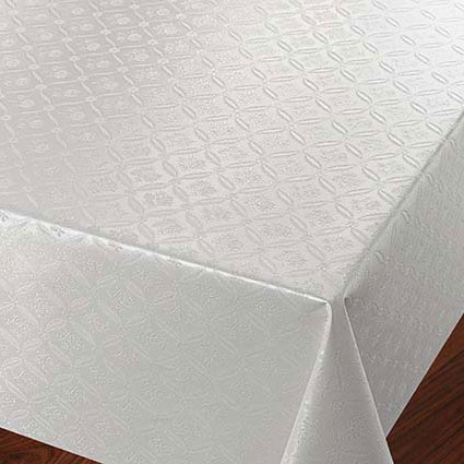 Fin vaxduk som metervara i offwhite färg, med vackert medaljongmönster med blommigt motiv inuti. Vaxduken är lätt att torka av och skyddar ditt bord mot fukt och fläckar.