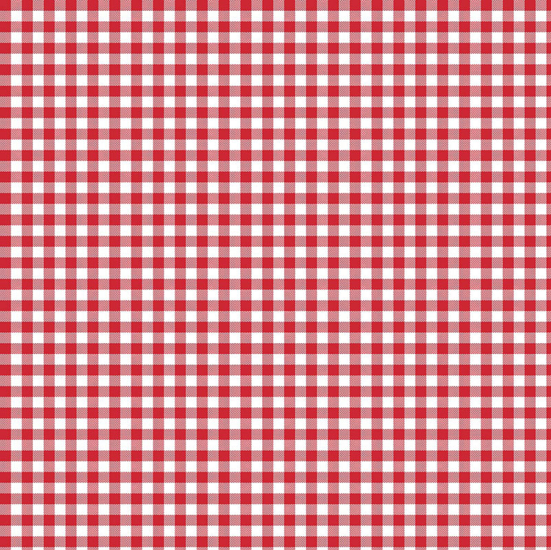 Härligt vaxduk på metervara tillverkad i PVC, prydd av ett klassiskt smårutigt mönster i rött och vitt.
