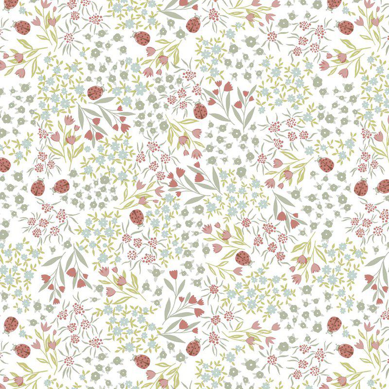 Ylva är en gullig vaxduk från Fondaco, prydd av ett flerfärgat mönster fyllt av blommor och nyckelpigor.